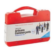 1 sparadrap / 3 sachets de 2 compresses de 10 x 10 cm / 3 compresses non-tissé brûlures / 5 bandes extensibles / 1 couverture de survie / 1 paire de ciseaux / 3 pansements bandes / 8 pansements 10 x 6 cm / 1 pansement bande max / 2 écharpes triangulaires / 2 paires de gants vinyle